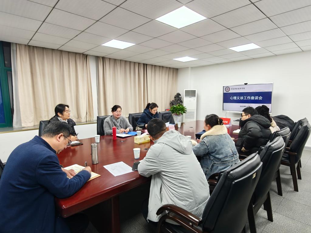义诊活动结束后,专题座谈会在洞山校区行政楼307会议室举行。李丽、廖延琳两位专家与学校学生部、安全保卫部负责人,心理健康教育中心工作人员以及各学院心理健康工作负责人参与会议会上,两位专家结合义诊情况,对学生普遍存在的心理状态与需求进行了专业分析,并建议学校、医院、家庭三方合力促进学生心理健康。学生部与安全保卫部负责人结合工作实际,分享了当前学生心理工作中的重点与难点,并就危机干预中的协同流程进行了交流研讨。与会人员围绕日常工作中遇到的具体问题展开了务实、深入的讨论。